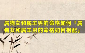 1、属狗女和属 🌵 羊男 🌸 的命格如何