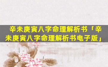 3、辛未庚寅八字命理解 🐞 析书籍