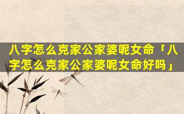 2、八字怎么克家公家 🐡 婆呢女命好吗