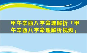 甲午 🕸 辛 🐯 酉八字命理解析视频