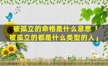 4、被孤立的命 🐯 格是什么意思呀 🐛