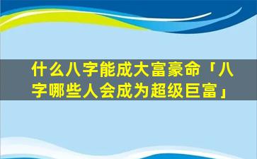 以下 🐋 八字特征的人也容易 🐒 成为超级巨 💮 富: