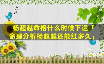 2、命理分析杨超越还 🌸 能 🌹 红多久