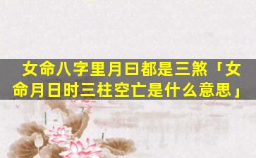 女命月、日、时三柱空亡,是,指,在、八、字命、理,中一个人的时辰八字中年柱天干地支月柱天干地支日柱 🌴 天干地支时柱天干地支中有三个或三个以上的地 🌸 支属于空亡。