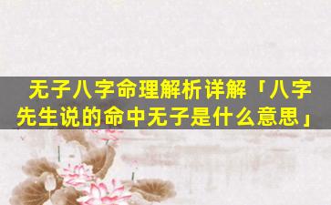 八字无子是指出生时的八字 🐼 命盘中没有子星,代表命主可能没有亲生子女。