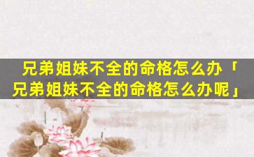 1、兄弟姐妹不全 🐯 的命格 🐴 怎么办