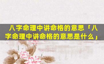 2、八字命 💐 理中讲命 🌲 格的意思是什么