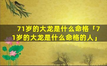 1、71岁的大龙是什 🌵 么 🌼 命格