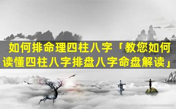 如何读懂四柱八字排 🦅 盘八字命盘解读