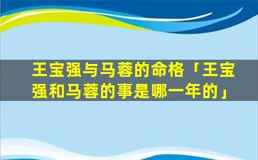 3、王宝强与马蓉的命格 🕷 相 🐝 似