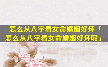 1、怎么 🐠 从八字看女命婚姻 🌳 好坏