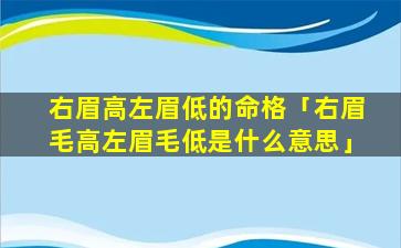 4、右眉高 🌻 左眉低的命格好不好 🐝