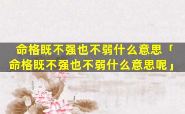 2、命格既 🐱 不强 🐦 也不弱什么意思呢
