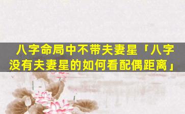 2、八字没有夫妻 🐶 星的如何看 🌾 配偶距离