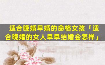 2、适合晚婚的女人早早结 🐧 婚会怎样 🌿