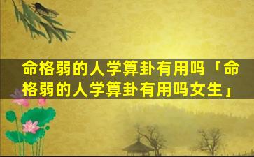 3、命格弱的人学算卦有用吗知 🦋 乎