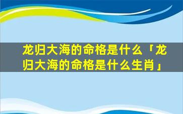 1、龙归大海的命格是什 🐴 么