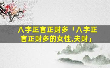 2、八字正官正财多的女性 🌼 ,夫财