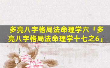 多亮八字格 🦈 局法 命理学六之 💮 3