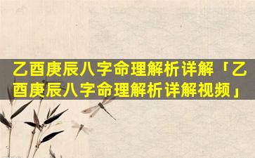 2、乙酉庚辰 🍁 八字命理解析详解视频