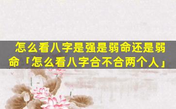 1、怎么 🌺 看八字是强是弱命还是弱命 🐴
