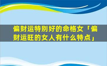 3、偏财 💐 运特别好的命格 🐯 女孩