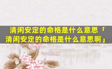 1、清闲安定的命格是什 🐈 么意 🐡 思