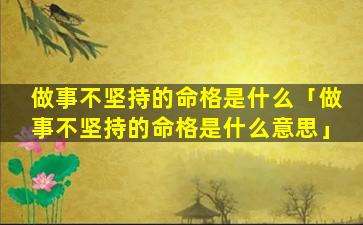 1、做事不坚持 🦊 的命格是什么