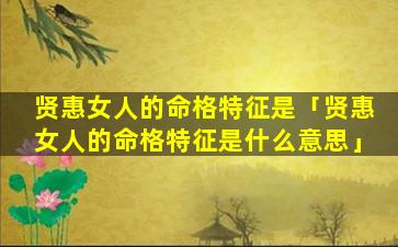 3、贤 🕷 惠女人的命格 🌻 特征是什么