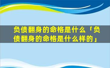 2、负债翻身的命格是 🐬 什么样 🐡 的