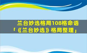 1、兰台 🐺 妙 🐠 选格局格108命语