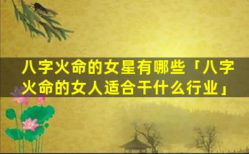周迅 刘亦菲2、八字火命的女人适 🦄 合干什么行业