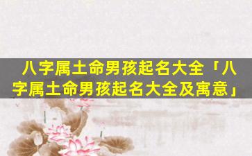 2、八字 🌹 属土命男孩起名 🐶 大全及寓意