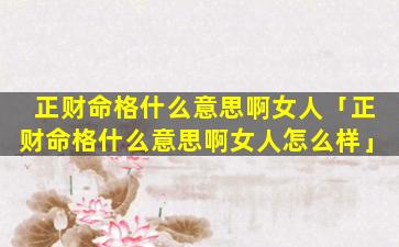 2、正 🐡 财命格 🌷 什么意思啊女人怎么样
