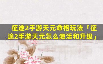 征途2手游天元命 🦅 格玩 🐱 法介绍