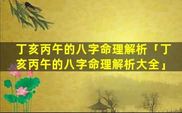 4、丁亥丙午的八字 🌷 命理解 🐘 析图
