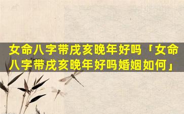 3、女命八字带戌亥晚年好吗婚 🕸 姻