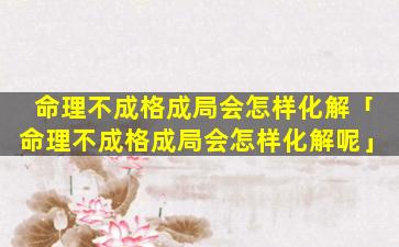 2、命理不成 🌾 格成局会怎 🐡 样化解呢