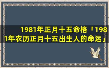 庚辛金4、1981年正月十五 🐅 出生是什么命