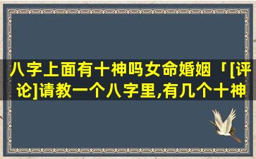 3、八字上面 🐕 有十神吗女命婚姻怎么样