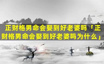1、正财 🕷 格男命会娶到好 🌴 老婆吗