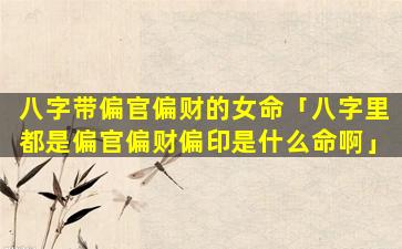 2、八字里都是偏 🌴 官偏财偏印是什么 🦄 命啊