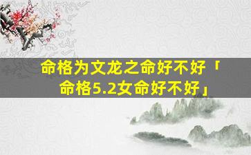 1、命 🌷 格为文龙之命好不好