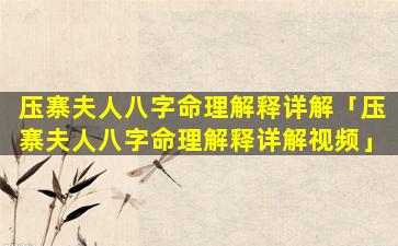 3、压 🐳 寨夫人八字命理解释详解大全