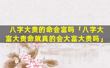 2、八字大 🐺 富大贵命 🐺 就真的会大富大贵吗