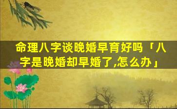 2、八字是 🌵 晚婚却早婚了,怎么办