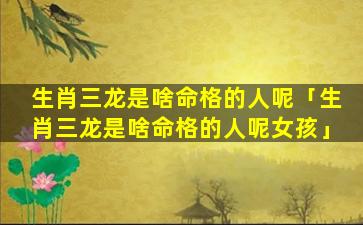 2、生肖三龙是 🐴 啥命格的人呢女孩