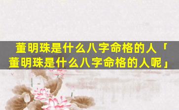 4、董 🐒 明珠的生辰八字是 🐧 什么