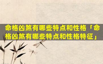 2、命格凶煞有哪些特 🌳 点和性格特 🦅 征