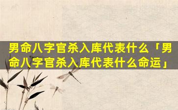 2、男命八字官杀入 🦉 库代表什么命 🦆 运